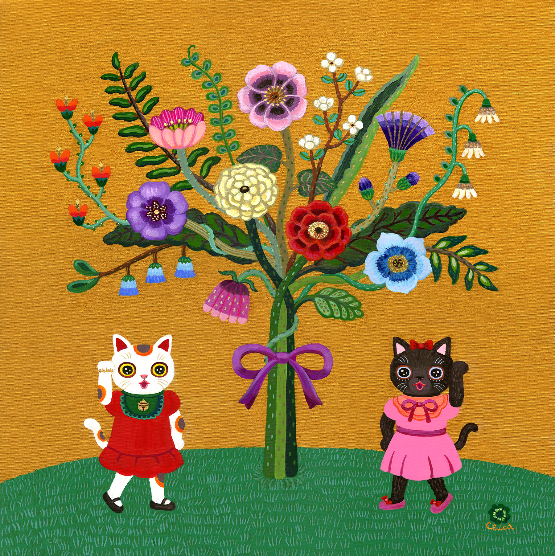 Blooming Flowers with Maneki Maneko